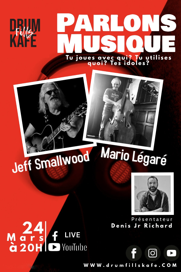 Parlons Musique #1 (Français) – 24 Mars 2021 / Invités: Jeff Smallwood et Mario Légaré, animateur Denis Jr Richard : https://www.youtube.com/watch?v=CBdzsGlUiOE&t=3s